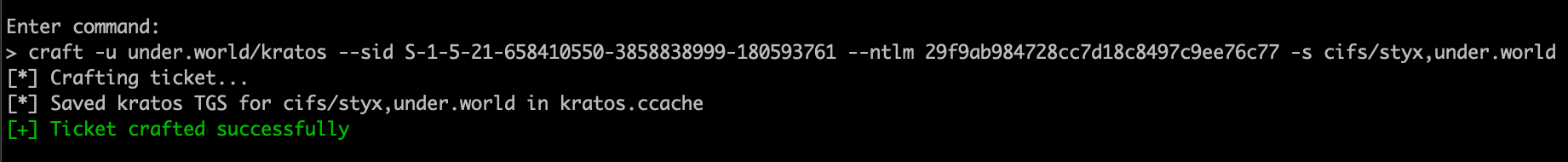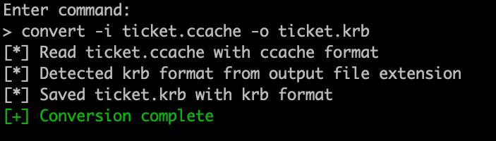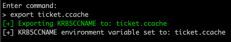 We can then set the KRB5CCNAME environment variable from within the tool using the export <ticket>