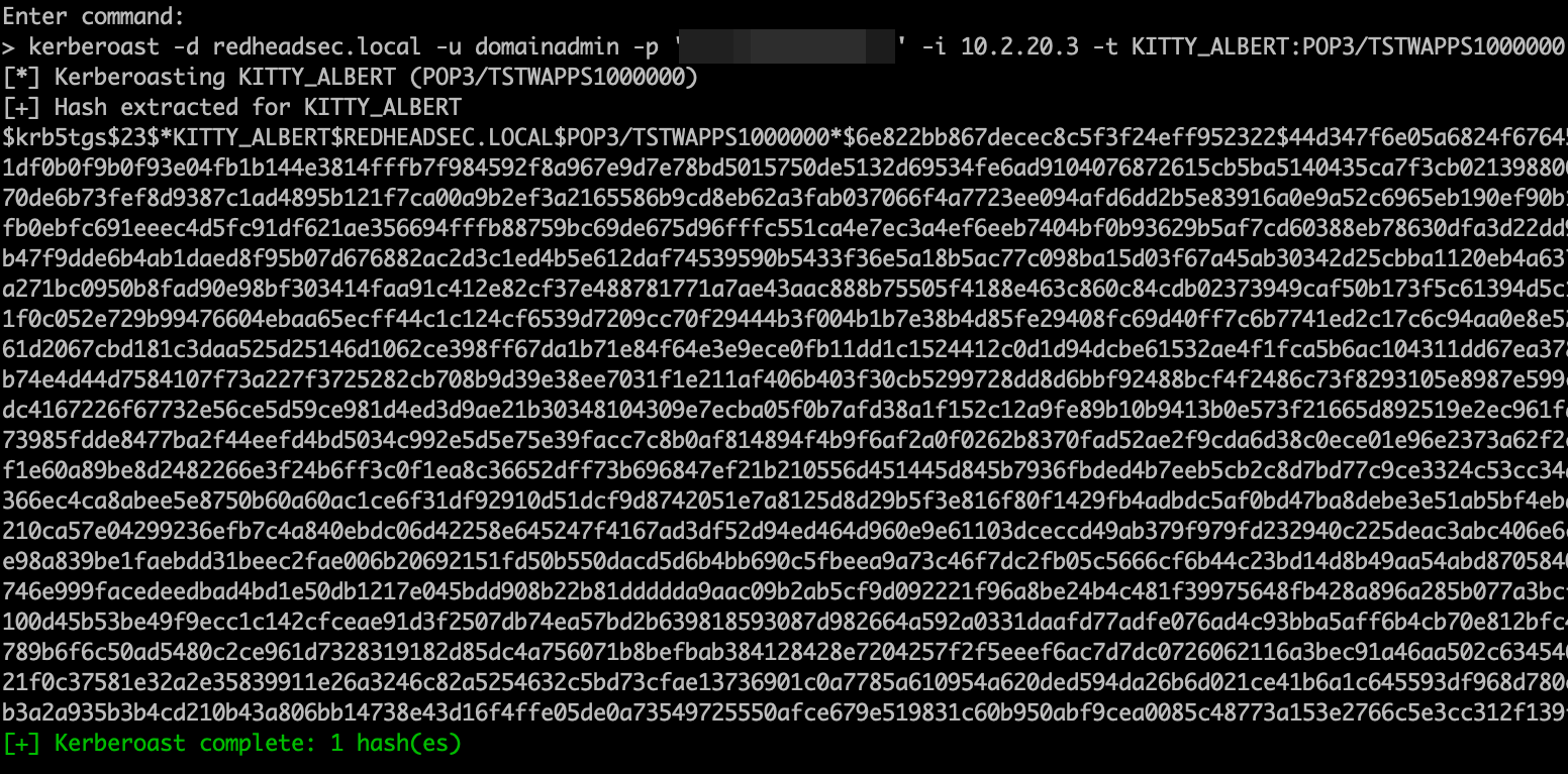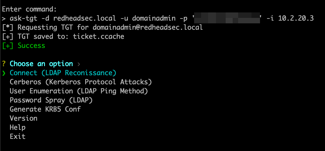We can use the target credentials we have obtained to pull a Kerberos ticket using the ask-tgt
