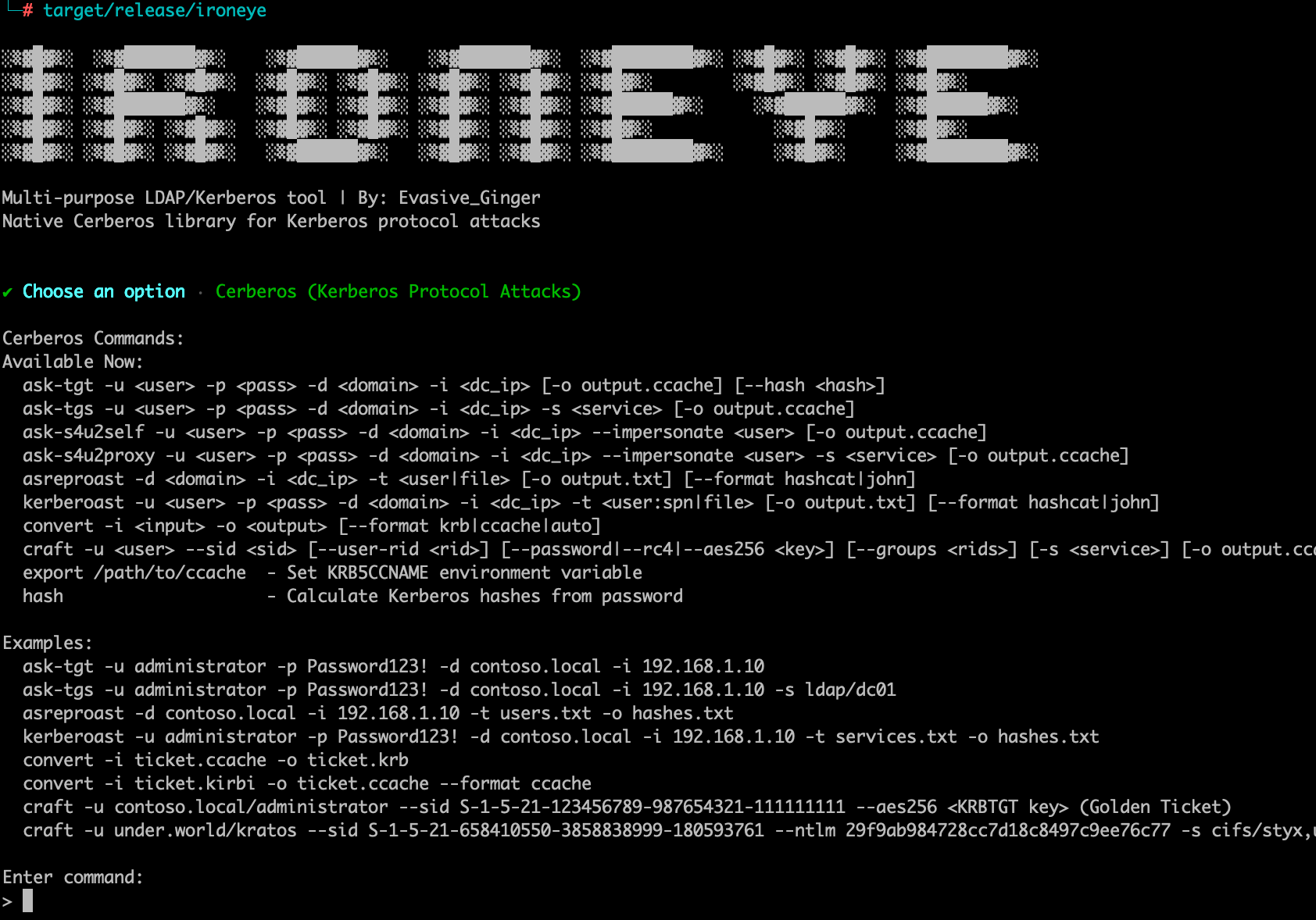 IronEye now uses a full library conversion of Cerbero in order to perform Kerberos operations and certain attacks.